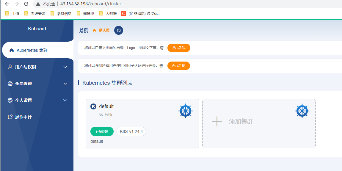 1)访问master的页面:http://43.154.58.198/kuboard/cluster
