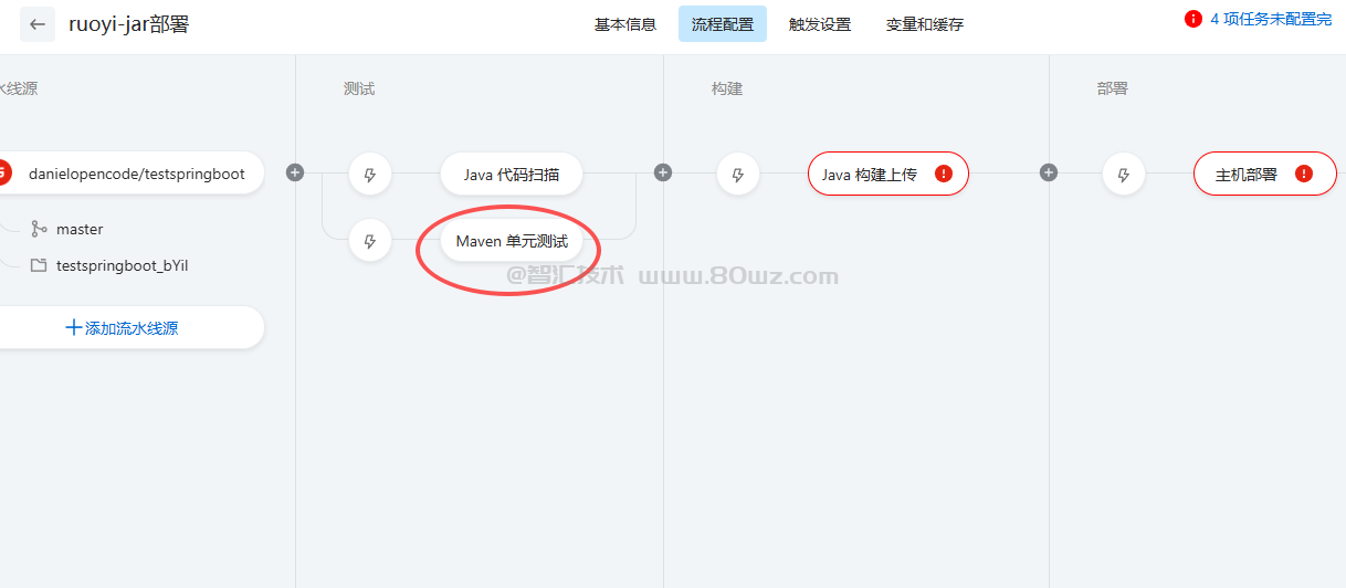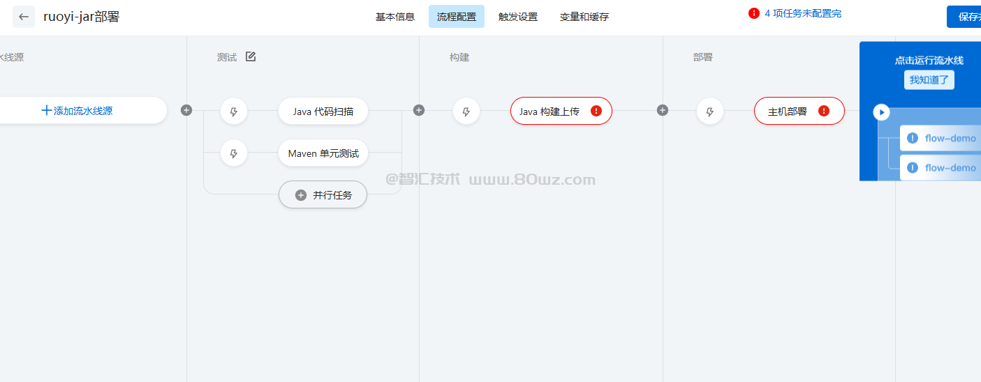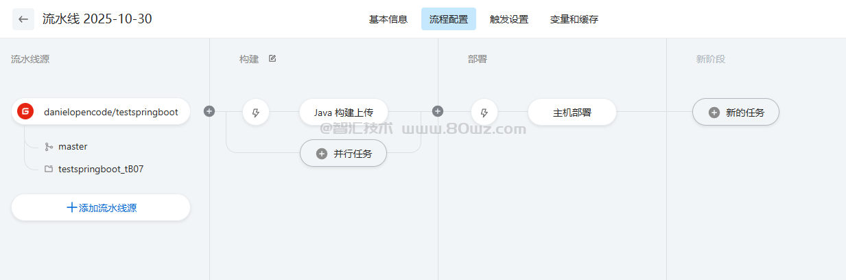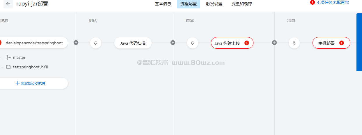 最后整体说明下,这里部署非常的方便,创建的时候,模板已经配置完大部分的工作了,所以这里只需要把部分节点的配置做下简单的修改即可完成整个流水线的配置。