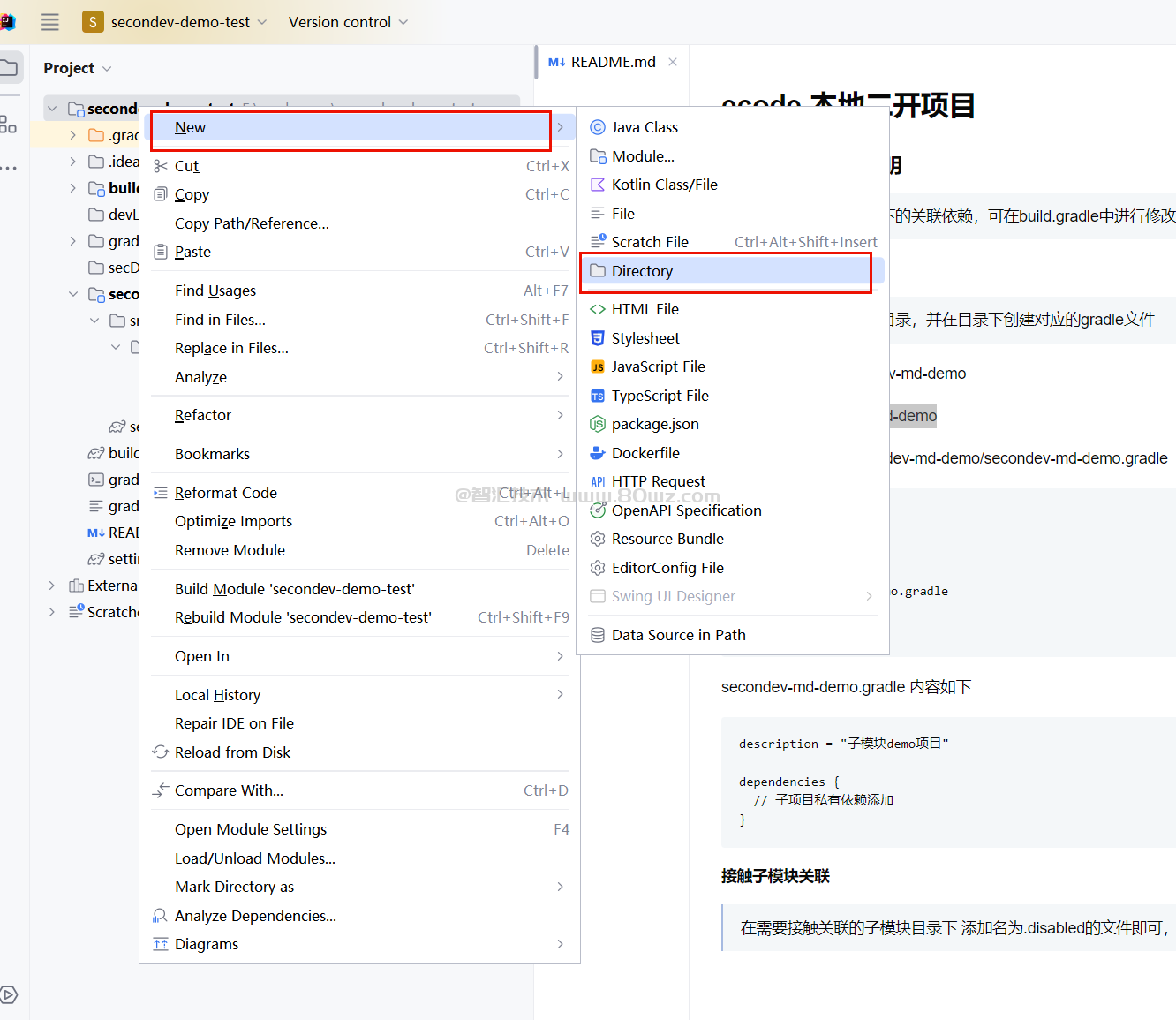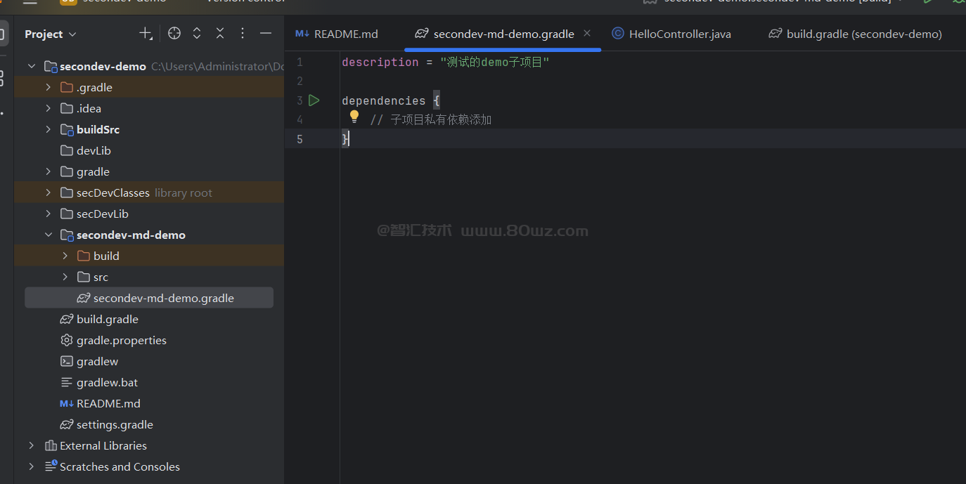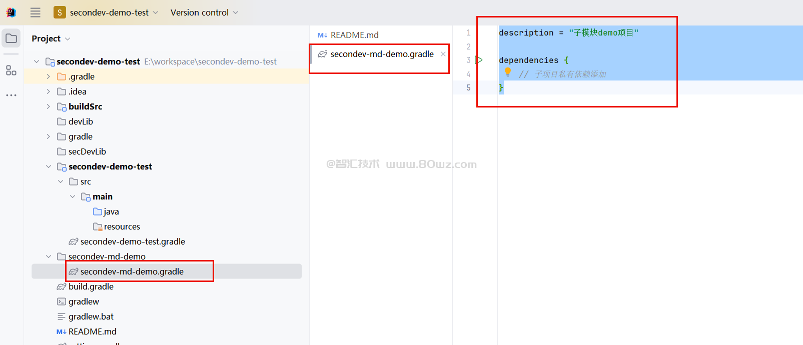 然后在这个secondev-md-demo项目下创建gradle文件,名称为:secondev-md-demo.gradle
