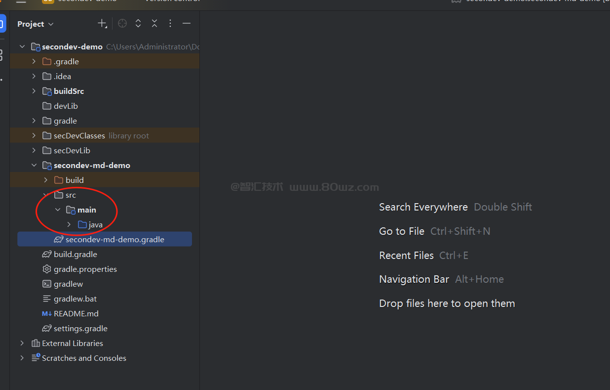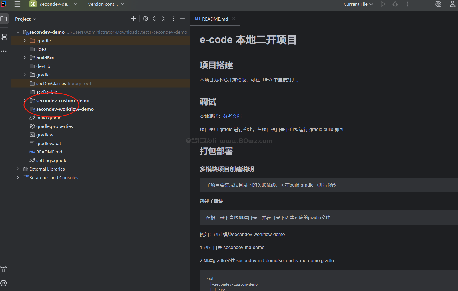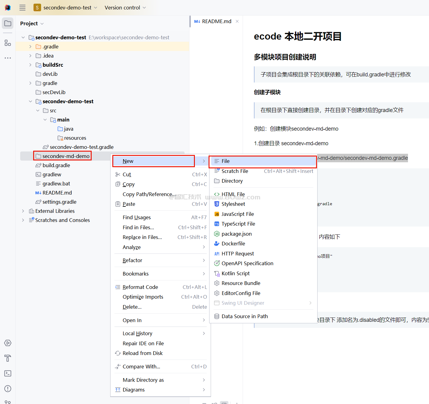 然后在这个secondev-md-demo项目下创建gradle文件,名称为:secondev-md-demo.gradle