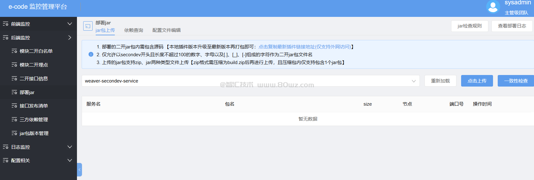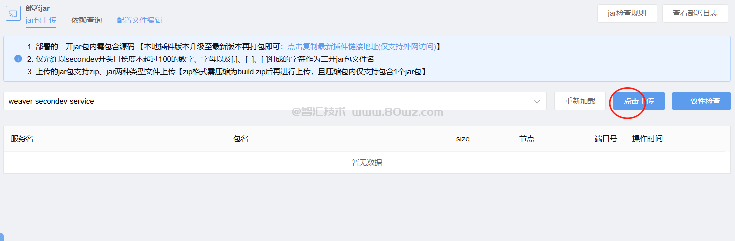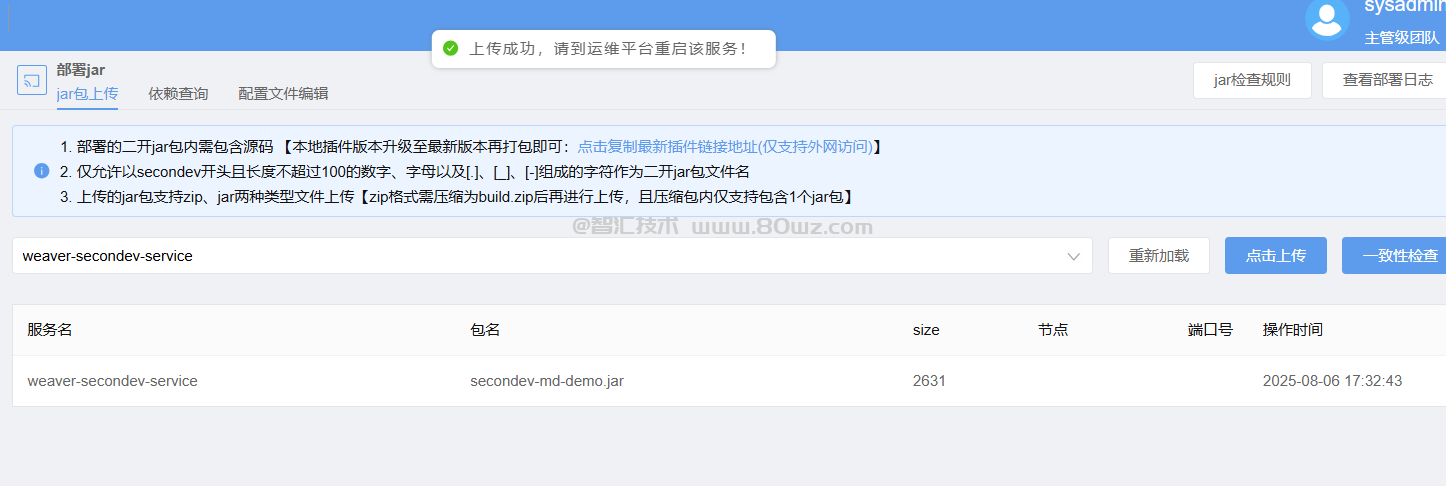 在上面搜索weaver-secondev-service,就会列举出对应的服务,然后我们点击上传