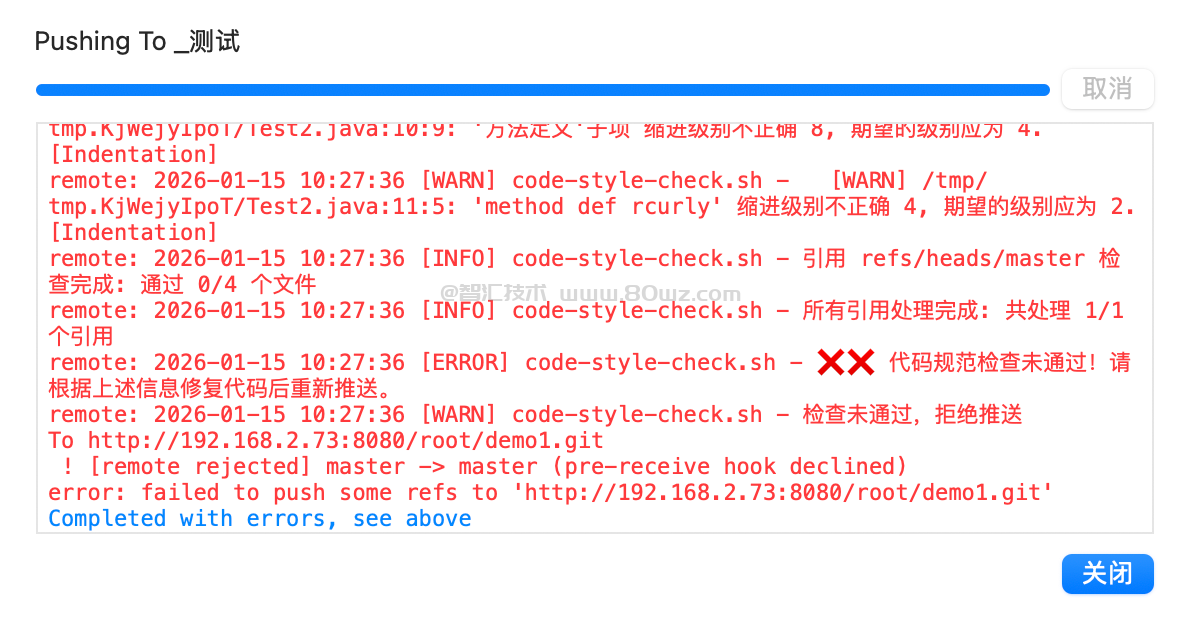 log "ERROR" "❌❌ 代码规范检查未通过!请根据上述信息修复代码后重新推送。"