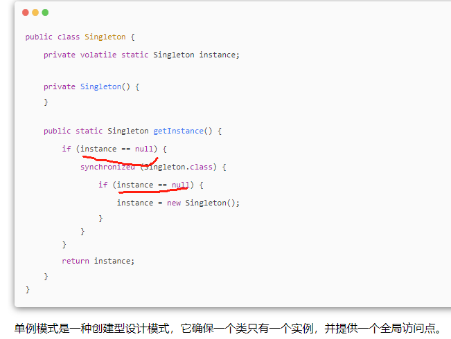 双重检查锁定(Double-Checked Locking)是一种在多线程环境下使用的延迟初始化的优化技术。在单例模式中,双重检查锁定用于确保只有一个实例被创建。双重检查使用案例如下: