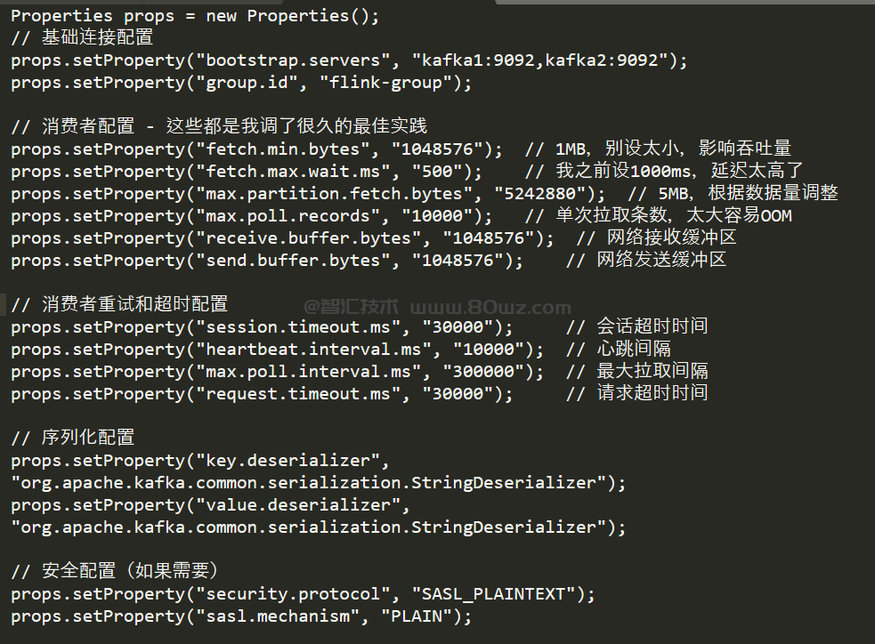 以下是我们在生产环境中使用flink消费kafka的消费者配置信息: