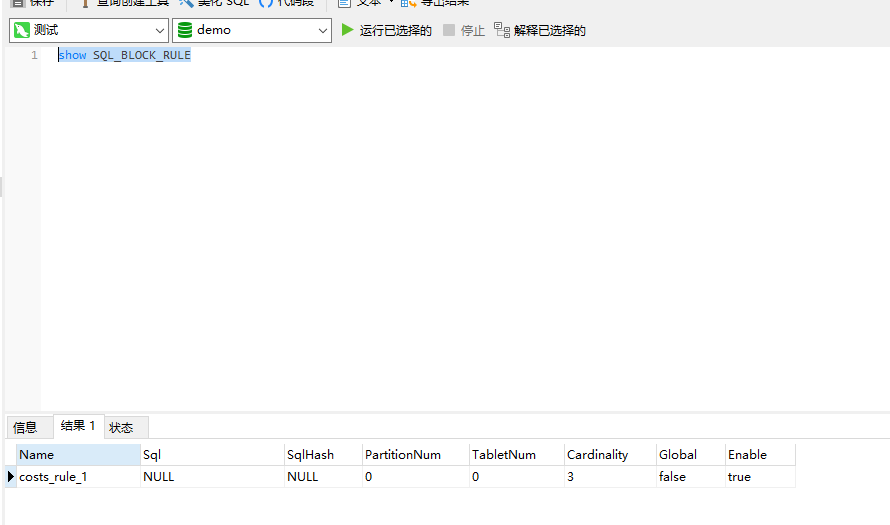 doris中查看所有的sql拦截规则,可以用如下的sql语句