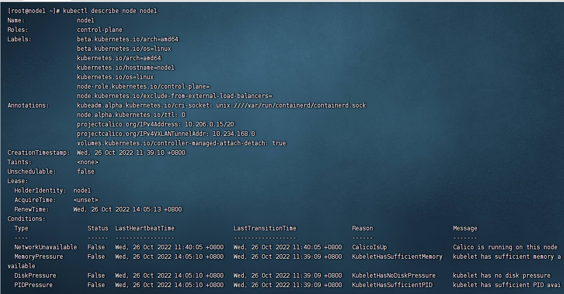 Kubernetes我们想要使用命令查看某一个节点的信息,可以使用如下命令: