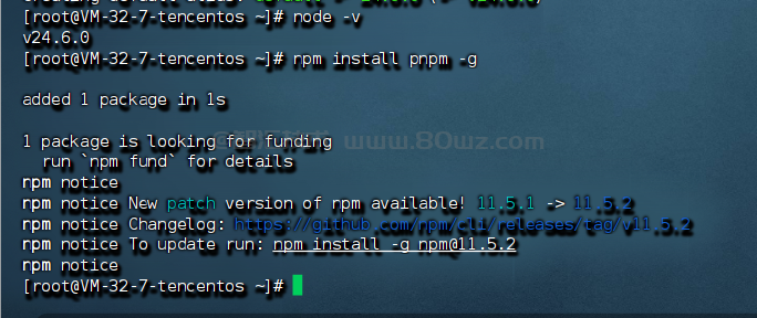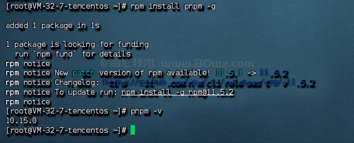 然后再安装pnpm,直接使用npm进行安装即可,示例如下: