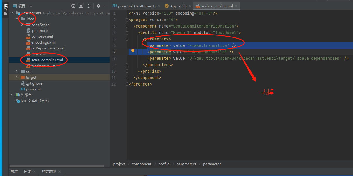 修改下当前项目的.idea目录下的 scala_compiler.xml文件,把<parameter value="-make:transitive" /> 这里去掉即可。