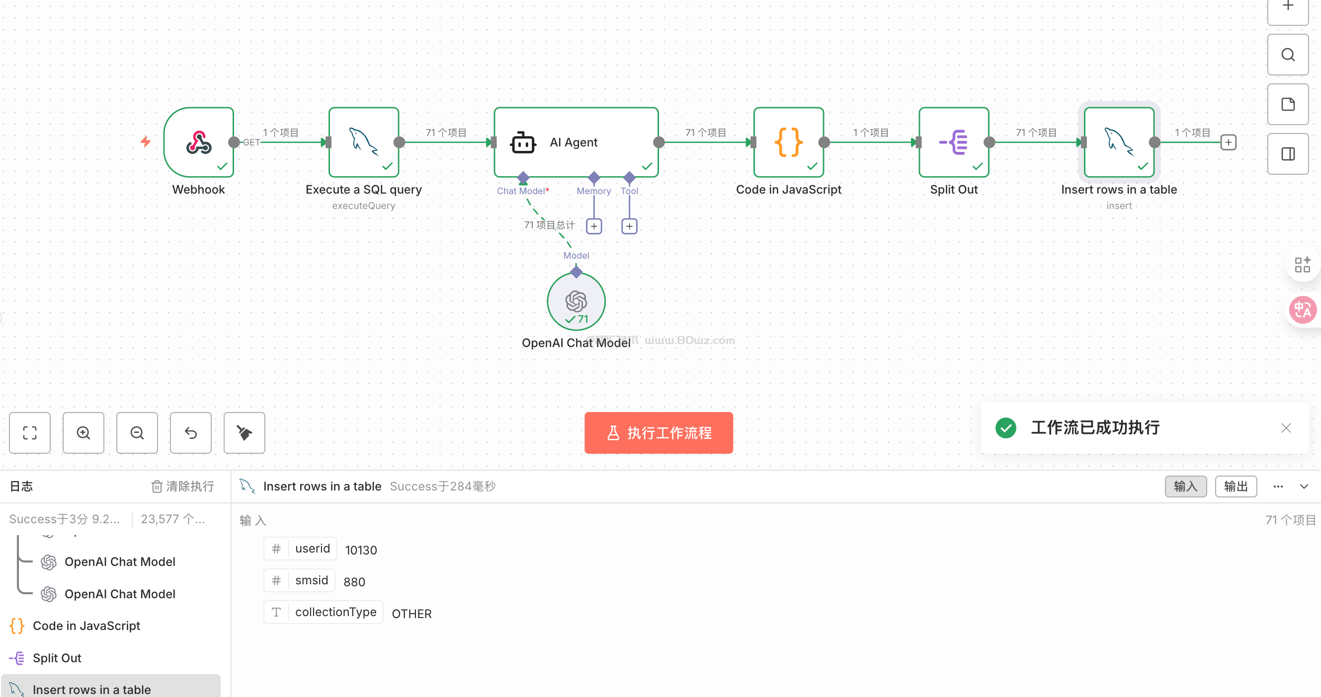 到此我们整个工作流就完成了,我们查看数据库的原始数据: