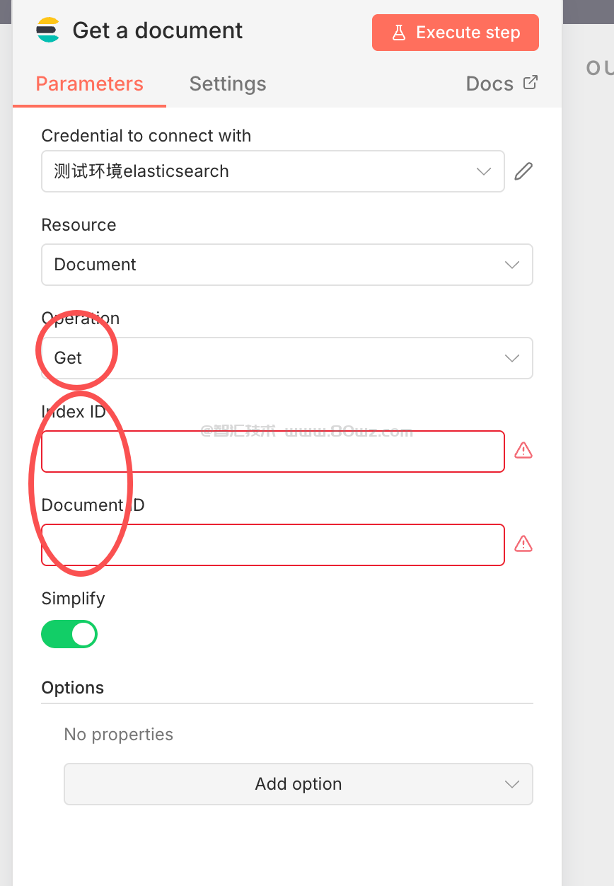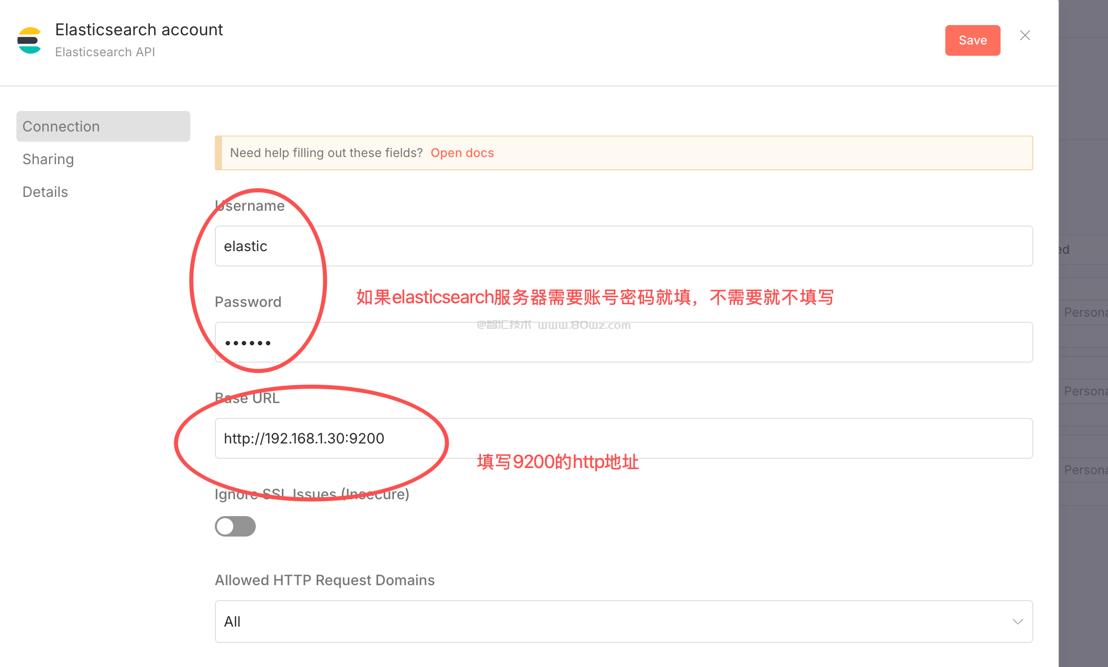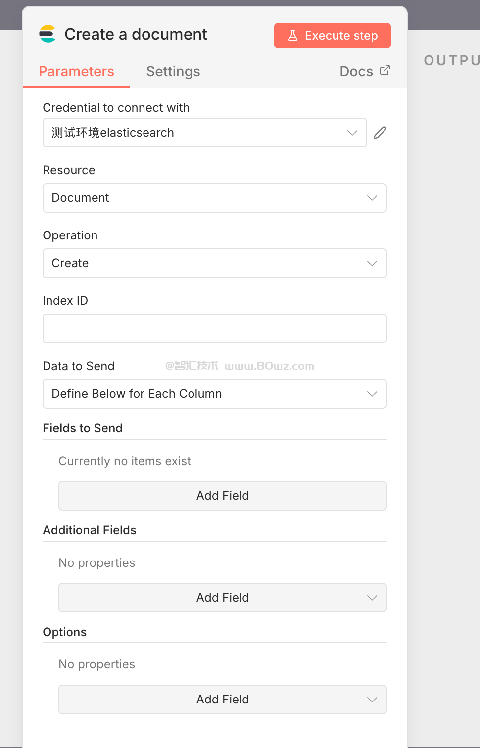 这里我们配置n8n的elasticsearch节点信息,配置图如下:
