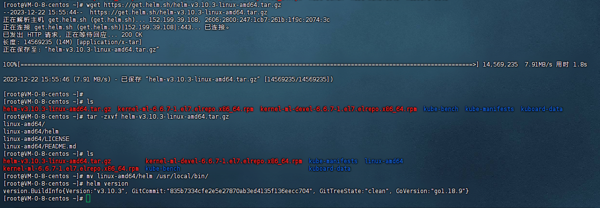 目前在kubernetes部署重,helm图表部署是非常主流的手法,所以这里我们也使用helm的方式部署Istio。所以我们需要在kubernetes节点上(任意节点)安装helm。本站在之前的文章中给大家介绍过helm相关的安装文档《Kubernetes集群安装helm的详细教程》。这里我们已经安装好了Helm。示例图如下: