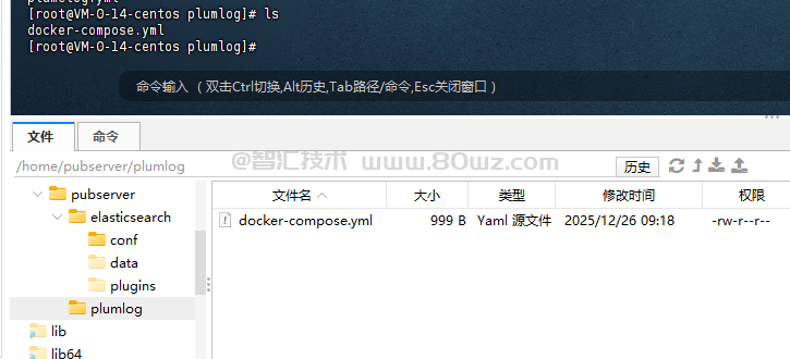 #创建conf文件夹 mkdir -p /home/pubserver/plumlog #进入到plumlog cd /home/pubserver/plumlog #创建plumlog.yml文件 touch docker-compose.yml