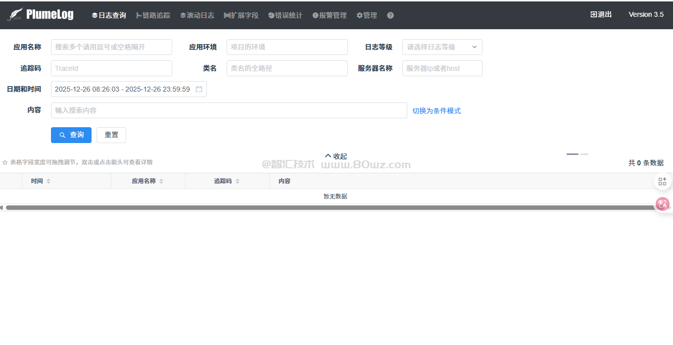 成功的访问到了plumelog的系统。